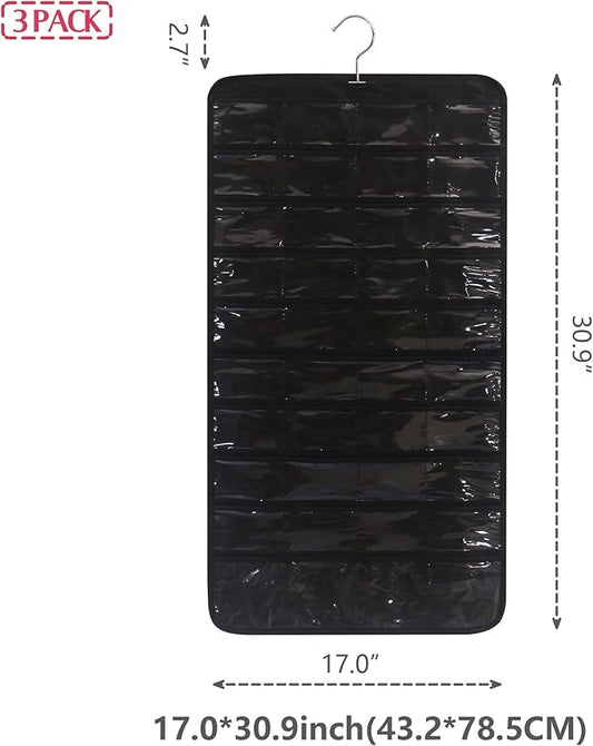 DIOMMELL 3 Pack Hanging Jewelry Organizer with 80 Pockets Jewelry Storage for Earrings Necklace Bracelet Ring Accessory, Black