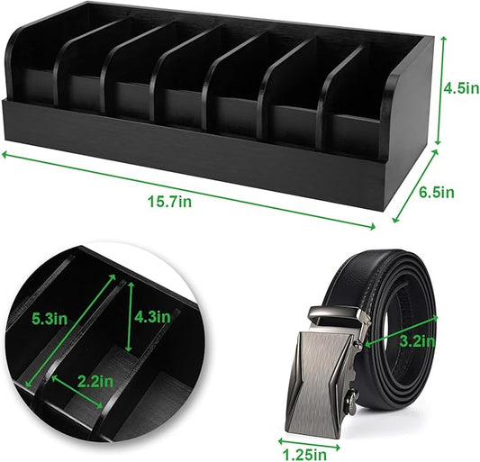 GTI Belt Organizer, 7 Compartments Belt Organizer for Closet and Drawer, Bamboo Display Case for Tie and Belt, Belt Storage Organizer for Men Women (Black)