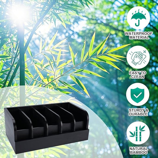 GTI Belt Organizer, 6 Compartments Belt Organizer for Closet and Drawer, Bamboo Display Case for Tie and Belt, Belt Storage Organizer for Men Women (Black)