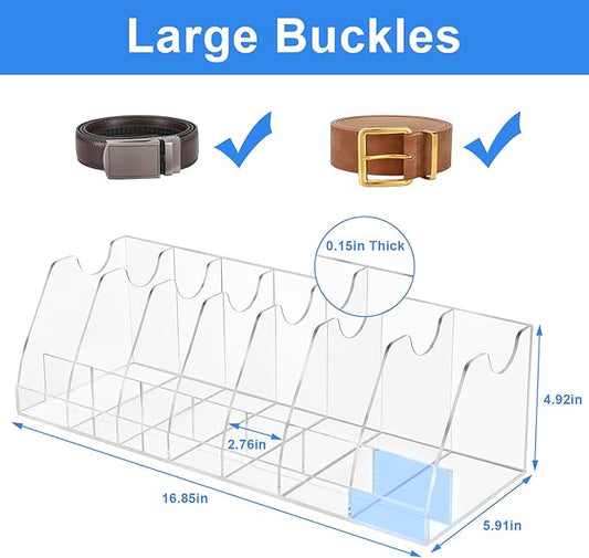 JASGOOD Acrylic Belt Organizer for Closet- 7 Compartments Clear Storage Container Display Holder for Belts, Ties, Watches, Bracelets, Jewelry,Make up and Accessories