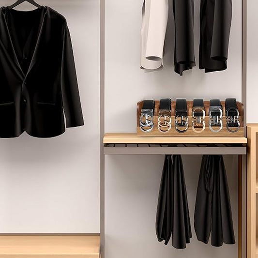 GTI Belt Organizer, 7 Compartments Belt Organizer for Closet and Drawer, Bamboo Display Case for Tie and Belt, Belt Storage Organizer for Men Women (Wooden)