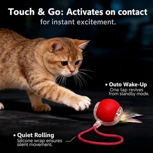 Interactive Cat Toys Ball - Electric Automatic Toys for Indoor cats, LED Lights and Toys Feather Tail with Sound Activated and Touch, USB Rechargeable, 2peeds Mode for Bored Kittens/Adult Cats/Ferret