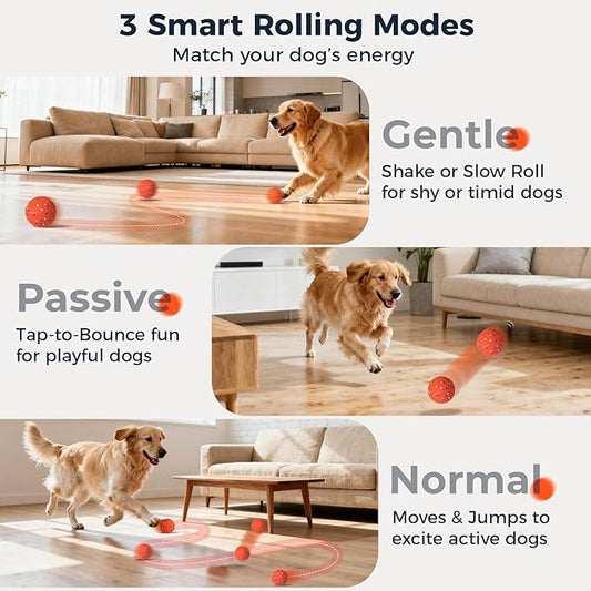 Interactive Dog Toys, Smart Interactive Dog Ball with 3 Modes, Auto-Moving&Bouncing, High-Resilience&Chew Resistant E-TPU Dog Ball, IPX6 Waterproof, Indoor&Outdoor Use, Rolling Ball Dogs