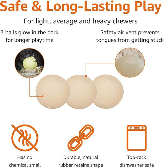 Amazon Basics Dog Toys, Interactive Glow Rubber Balls, (Pack of 3), 2.5 inch, Beige