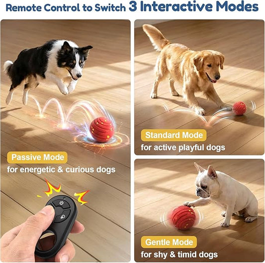Interactive Dog Toys with Remote Control, Smart Interactive Dog Ball with 3 Modes, Auto-Moving&Bouncing, High-Resilience&Chew Resistant E-TPU Dog Ball, IPX6 Waterproof, Rolling Ball Dogs