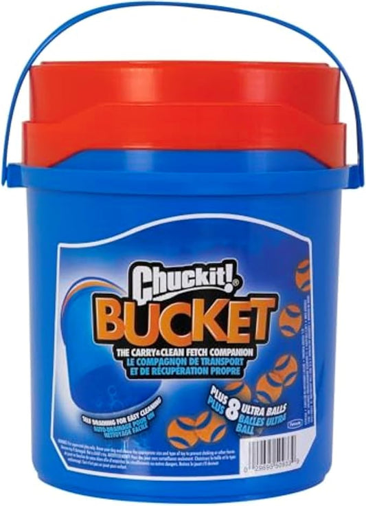 Chuckit! Ultra Ball Dog Toy with Chuckit! Cleaning Bucket, Bouncy Fetch Pet Toys For Dogs 20-60 lbs, Interactive Dog Toys, Durable Rubber, Size Medium, 2.5-inch Diameter, 8-Pack of Balls