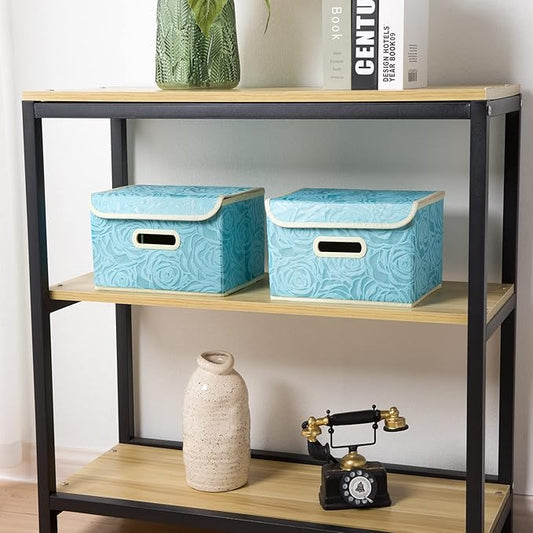 PRANDOM Collapsible Storage Boxes with Lids Fabric Decorative Storage Bins Cubes Organizer Containers Baskets with Cover Handles Divider for Bedroom Closet Living Room 14.9x9.8x9.8 Inch 1 Pack