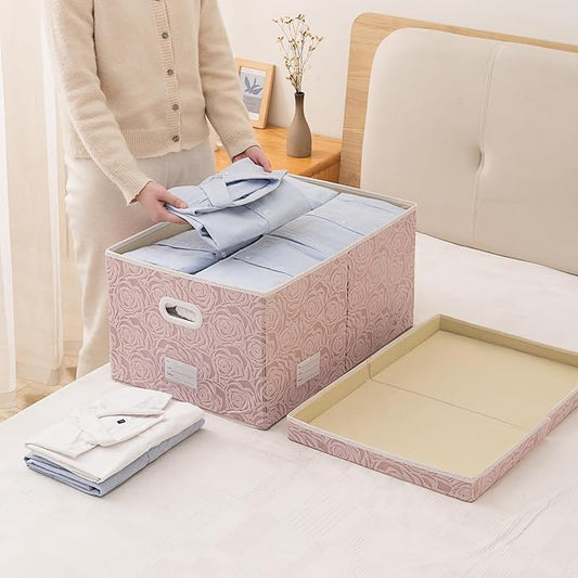 PRANDOM Larger Collapsible Storage Bin with Lid [1-Pack] Fabric Decorative Storage Box Cube Organizer Container Baskes with Handles Divider for Bedroom Closet Living Room Pink 17.7x11.8x11.8 Inch