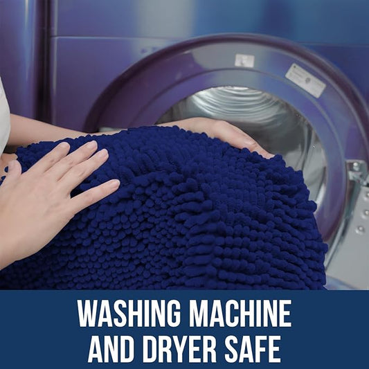 Muddy Mat Chenille Bathroom Rugs Quick Dry Microfiber Mats Non Slip Washable, Extra Thick, Soft and Highly Absorbent Bath Mats for Bathroom, Kitchen, and Shower Floor - Navy Blue Large 35"X24"