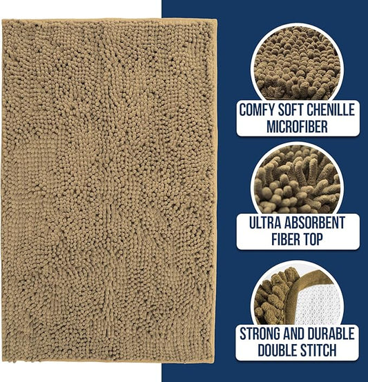 Muddy Mat Chenille Bathroom Rugs Quick Dry Microfiber Mats Non Slip Washable, Extra Thick, Soft and Highly Absorbent Bath Mats for Bathroom, Kitchen, and Shower Floor - Beige Large 35"X24"