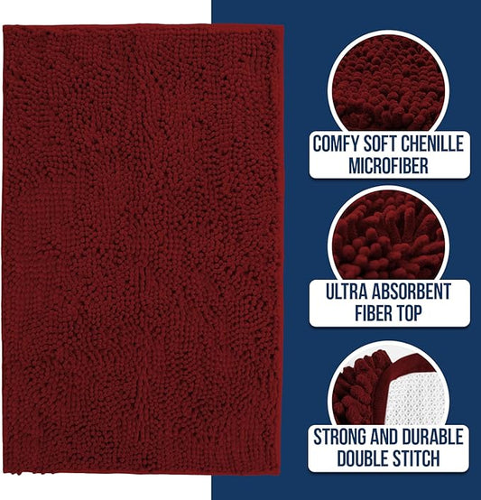 Muddy Mat Chenille Bathroom Rugs Quick Dry Microfiber Mats Non Slip Washable, Extra Thick, Soft and Highly Absorbent Bath Mats for Bathroom, Kitchen, and Shower Floor - Red Small 28"X18"