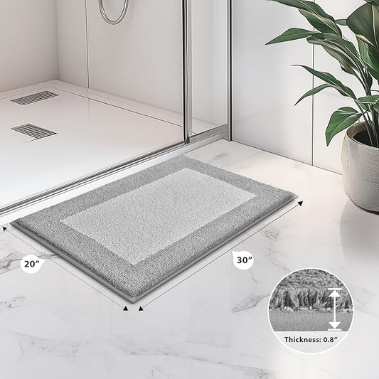 Bathroom Rugs 20" x 30", Non-Slip Extra Soft Absorbent Bath Rugs, Machine Washable Quick Dry Bath Mats for Bathroom Floor, Shower, Bathtub and Sink, Light Grey & Grey