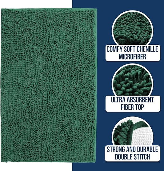 Muddy Mat Chenille Bathroom Rugs Quick Dry Microfiber Mats Non Slip Washable, Extra Thick, Soft and Highly Absorbent Bath Mats for Bathroom, Kitchen, and Shower Floor - Dark Green Runner 59"X24"