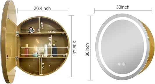 30 inch Round Medicine Cabinet with Lights,Led Medicine Cabinet with Defogger,Illuminated Mirror Cabinet for Bathroom,Dimmable,Defogger,3 Color Temperature 3000k-6500k Gold