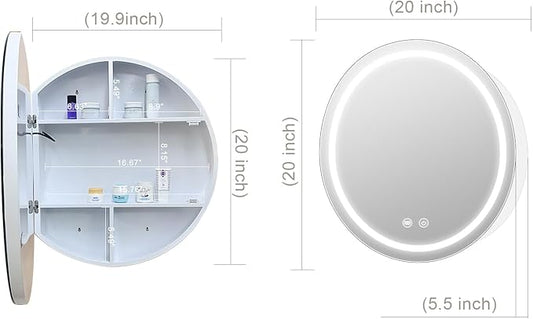 20inch Round Medicine Cabinet with Lights,Led Medicine Cabinet with Defogger,Illuminated Mirror Cabinet for Bathroom,Dimmable,Anti-Fog,3 Colors,Surface Mount Only