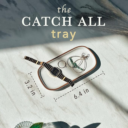 Mora Small Ceramic Decorative Tray – Rectangle 6.4 Inch Dish for Jewelry, Perfume, Makeup, Accessories, Candle, in the Bathroom Vanity, Bedside, or Kitchen Counter – Cute Organizer – White
