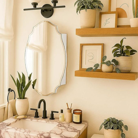 TOMACE Frameless Assymetrical Oval Medicine Cabinet with Beveled Mirror Irregular Surface Bathroom Medicine Cabinet Mirror with Storage for Bathroom 19'' H x 24'' W