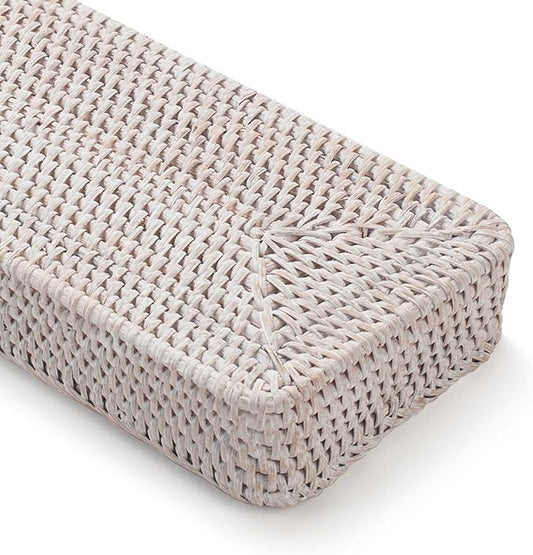 Rattan Bathroom Vanity Trays Toilet Tank Baskets Long Narrow Hand Towel Storage Basket for Storage, Decorative (Whitewash 10.2 x 4.9 x 1.6 inch)