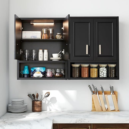 Black Wall Cabinet 23x29 inch for Bathroom Laundry Room Bedroom Kitchen Wood Medicine Cabinet, DIY Lighting, Soft-Close Hinge, 2 Door,Above Toilet Storage
