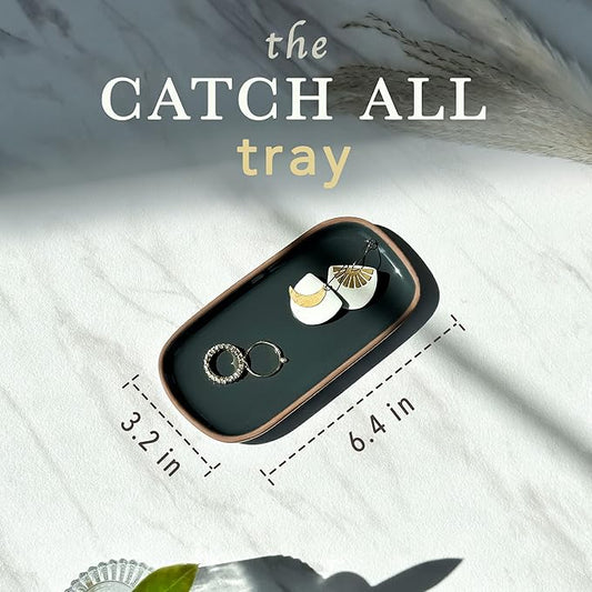 Mora Ceramic Decorative Tray - Rectangle 6.4in Dish for Jewelry, Perfume, Makeup, Accessories, Candle, in The Bathroom Vanity, Bedside, or Kitchen Counter. Cute Organizers - Black