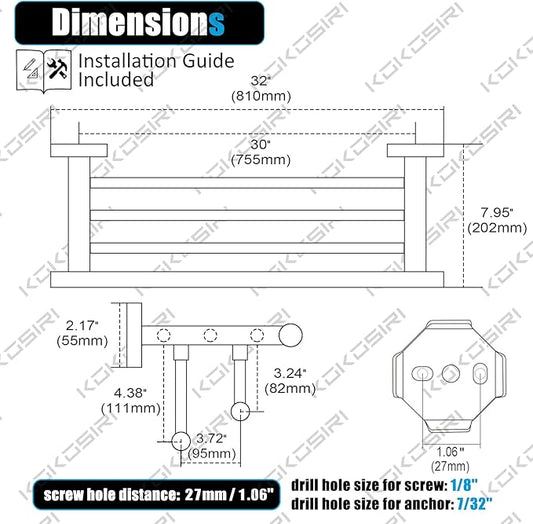 KOKOSIRI Bath Towel Rack with Double Towel Bars 32-Inch Bathroom Towel Shelves Towel Holder Wall Mounted Stainless Steel, Matte Black, B6005BK-L32
