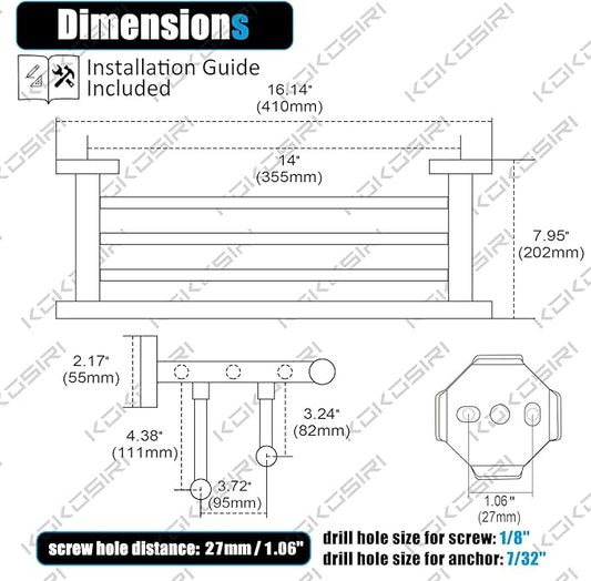 KOKOSIRI Bath Towel Rack with Double Towel Bars 16-Inch Bathroom Towel Shelves Towel Holder Wall Mounted Stainless Steel, Matte Black, B6005BK-L16