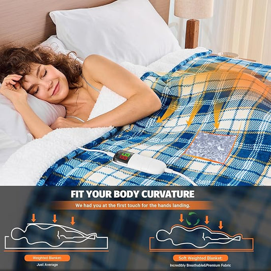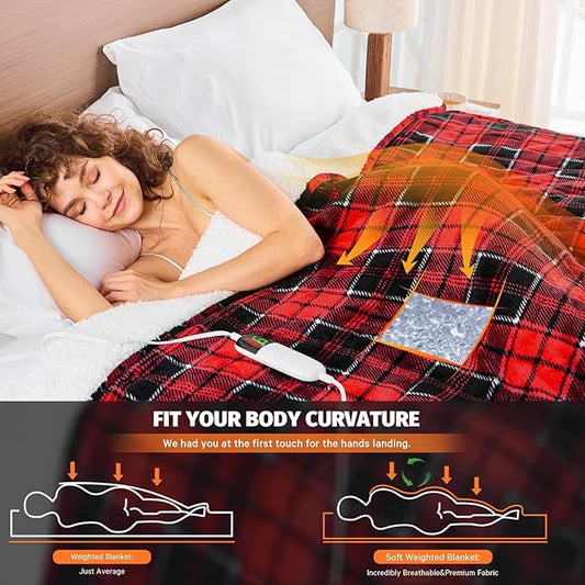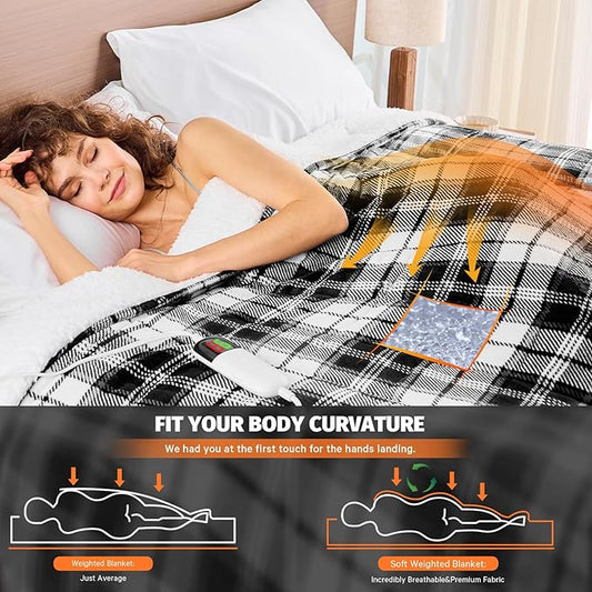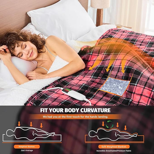 Heated Weighted Blanket for Adults 20Lbs Queen Size - 60"x80", 2-in-1 Electric Heating Pad Lap Heavy Blanket for 190-210lbs for Bed, 10 Heat Level 1-8H Auto Off, Christmas Birthday Gifts For Women Mom
