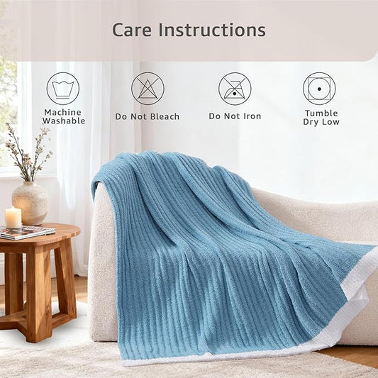 WRENSONGE Striped Throw Blanket, Blue Soft Cozy Fluffy Warm Hand Made Throw Blankets for Couch, Sofa, Chair, Bed, Camping, Picnic, Travel Lightweight Bed Blanket - 60"*80"