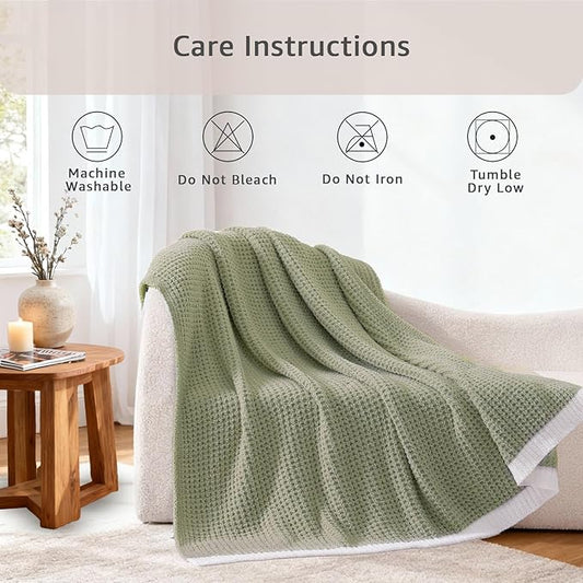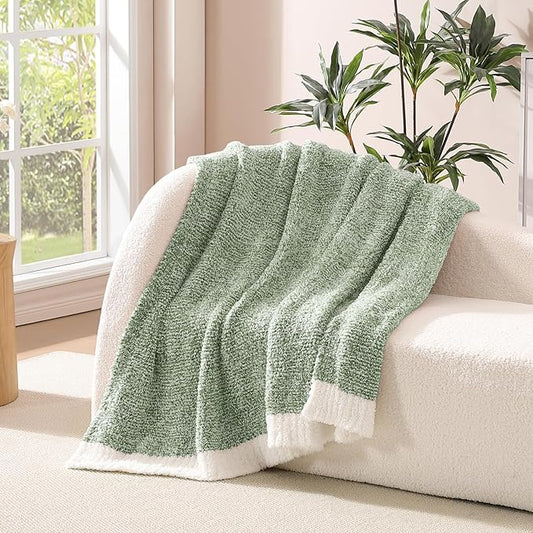 WRENSONGE Checkered Throw Blanket, Avocado Green Soft Cozy Fluffy Warm Hand Made Throw Blankets for Couch, Sofa, Chair, Bed, Camping, Picnic, Travel Lightweight Bed Blanket - 60"*80"