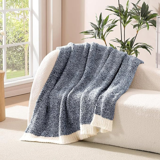 WRENSONGE Throw Blanket Cationic Dyeing Navy Blue Soft Cozy Fluffy Warm Hand Made Throw Blankets for Couch, Sofa, Chair, Bed, Camping, Picnic, Travel Lightweight Bed Blanket - 50"x60"