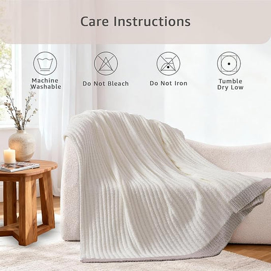 WRENSONGE Striped Throw Blanket, White Soft Cozy Fluffy Warm Hand Made Throw Blankets for Couch, Sofa, Chair, Bed, Camping, Picnic, Travel Lightweight Bed Blanket - 50"*60"