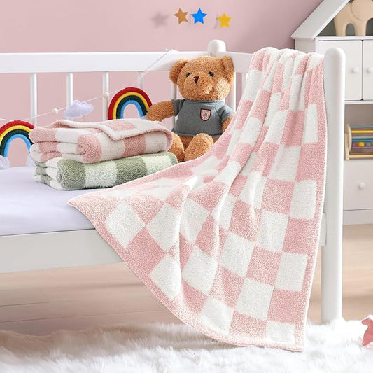 WRENSONGE Checkered Throw Blanket, Pink Soft Cozy Fluffy Warm Hand Made Throw Blankets for Couch, Sofa, Chair, Bed, Camping, Picnic, Travel Lightweight Bed Blanket - 30"*40"