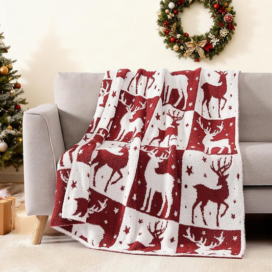 WRENSONGE Christmas Throw Blanket, Red Deer Pattern, Soft Cozy Fluffy Warm Throw Blankets for Couch, Sofa, Chair, Bed, Camping, Picnic, Travel Lightweight Bed Blanket - 50"*60"