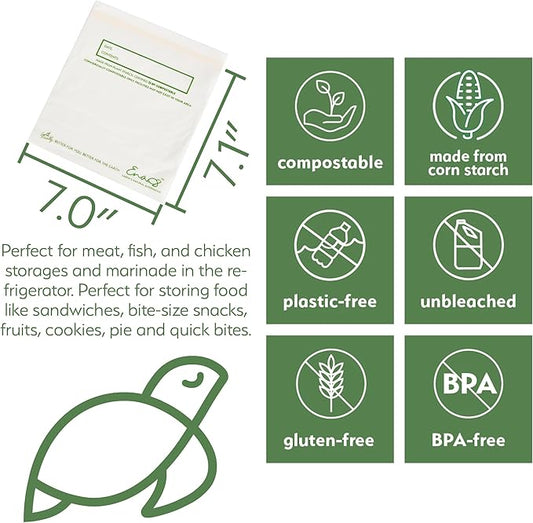 100% Compostable Food Storage Bags [Sandwich 150 Pack] Eco-Friendly Freezer Bags, Resealable Bags, Heavy-Duty, Reusable, by Earth's Natural Alternative, off white