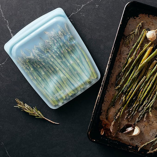 Stasher Premium Silicone Reusable Food Storage Stand-Up Mid Bag, Clear, Microwave, Sous Vide, Dishwasher, Oven and Freezer Safe, BPA Free, Leak-free, Eco-friendly, 56 Oz
