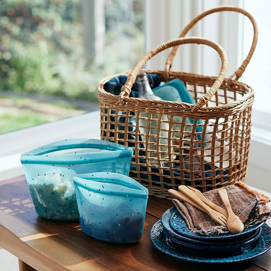 Stasher Premium Silicone Reusable Food Storage Stand-Up Bag Mega, Aqua, Microwave, Sous Vide, Dishwasher, Oven and Freezer Safe, BPA Free, Leak-free, Eco-friendly, 104 Oz