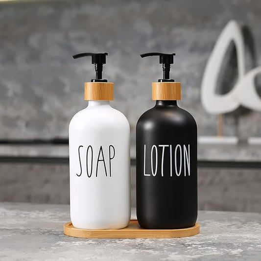 MOMEEMO Soap Dispenser Bathroom Set with Hand and Lotion Dispenser, Suitable for Bathroom Decor. (Black & White)