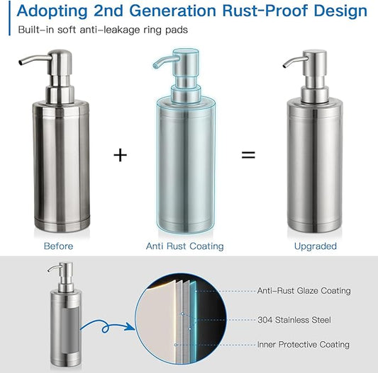 GAPPO Brushed Nickel Soap Dispenser Stainless Steel Metal Pump Hand Lotion Bottle for Bathroom, Bedroom and Kitchen(300ML/10.15Ounce)