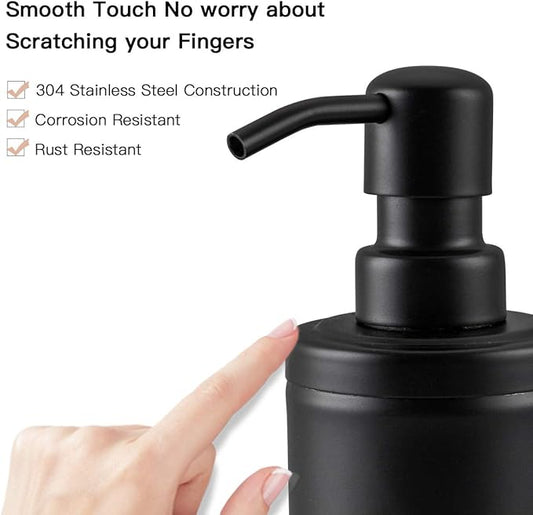 16oz Glass Soap Dispenser with Stainless Steel Pump, 21 Waterproof Labels, Non-Slip Protective Silicone Pad, Set of 2 for Bathroom & Kitchen (Matte Black Bottle/Brushed Silver Pump)