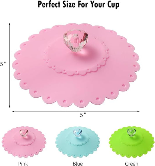 Diamond Silicone Cup Covers (Set of 3) , Multicolored Silicone Lids for Mugs, Cups, Tea Pots,Flexible Mug Covers,Hot Cup Lids for Coffee & Tea