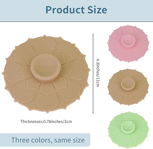Silicone Cup Covers 4.1 Inch Reusable Silicone Mug and Cup Lids Suction Seal Lid Caps to Keep Drink Warm or Cold for Steeping Coffee Tea And Drink Cover (wuwan flower 3pcs, 3)