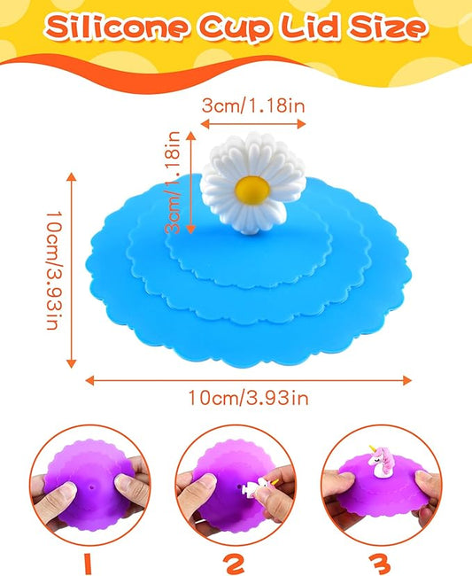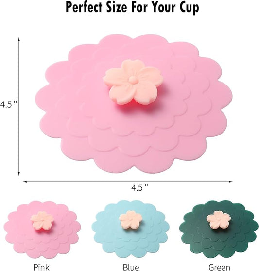 Petal Silicone Cup Covers (Set of 3) , Multicolored Silicone Lids for Mugs, Cups, Tea Pots,Flexible Mug Covers,Hot Cup Lids for Coffee & Tea