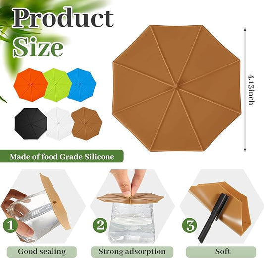 Patelai 6 Pcs Silicone Cup Covers 4.13 Inch Umbrella Silicone Cup Lids Flexible Coffee Mug Covers Reusable Mug Lid for Coffee Tea(Black, Brown, White)