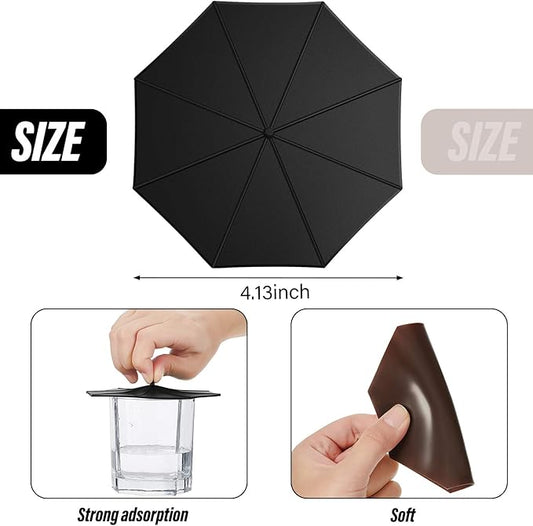 Patelai 6 Pcs Silicone Cup Covers 4.13 Inch Umbrella Silicone Cup Lids Flexible Coffee Mug Covers Reusable Mug Lid for Coffee Tea(Black)