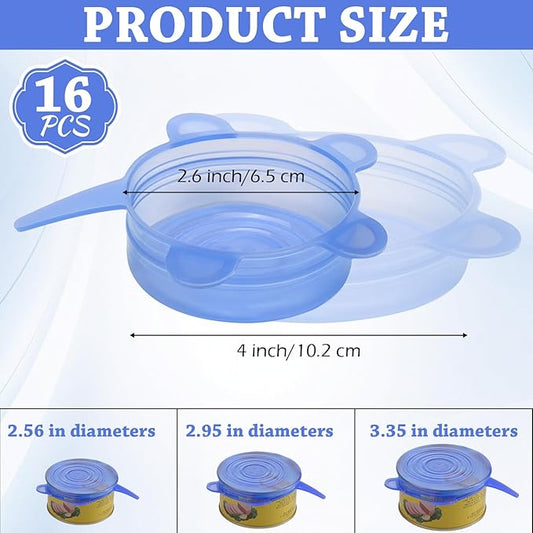 Patelai 16 Pack Same Size Silicone Stretch Lids Thicker Reusable Sturdy Silicone Container Cover, Expandable Food Storage Covers Dishwasher and Freezer Safe 2.6-3.3 Inch(Blue)