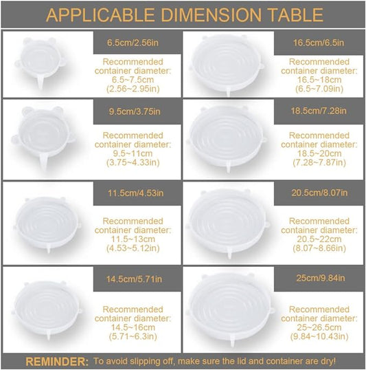 4 Pack Same Size Silicone Stretch Lids, Thicker Reusable Sturdy Silicone Container Cover, Expandable Food Storage Covers, Dishwasher and Freezer Safe, 8.07in(20.5cm)