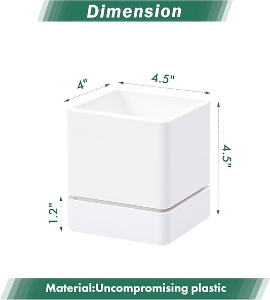 4 Inch Herb Planter Pot, Plastic Planter with Drainage Holes and Saucer, Modern Decorative Gardening Pot for Indoor Plants, Flowers, Herbs, Succulents, White, Set of 1, 76-Y-A-1