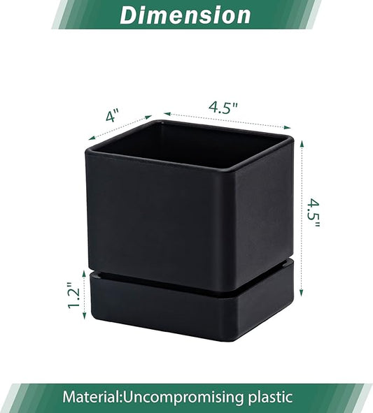 4 Inch Herb Planter Pot, Plastic Planter with Drainage Holes and Saucer, Modern Decorative Gardening Pot for Indoor Plants, Flowers, Herbs, Succulents, Black, Set of 1, 76-Y-B-1