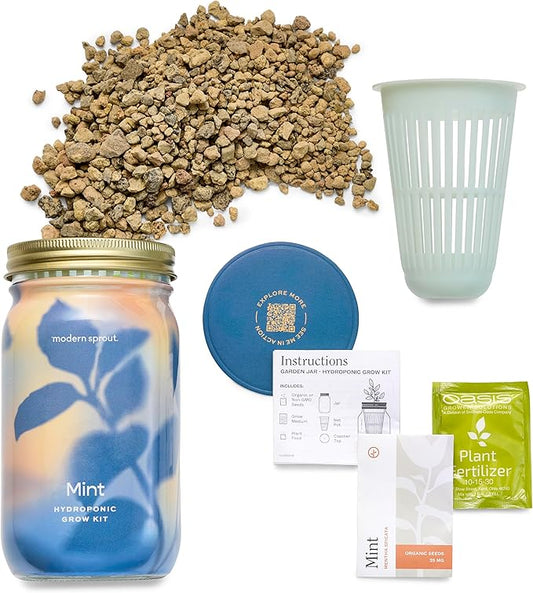 Modern Sprout Mason Garden Jar - Self-Watering Hydroponics Growing System Kit with Organic Herb Seeds - Jar Planter for Indoor Herb Garden - Seed Starter Kit - Home Decor & Gifting - Mint
