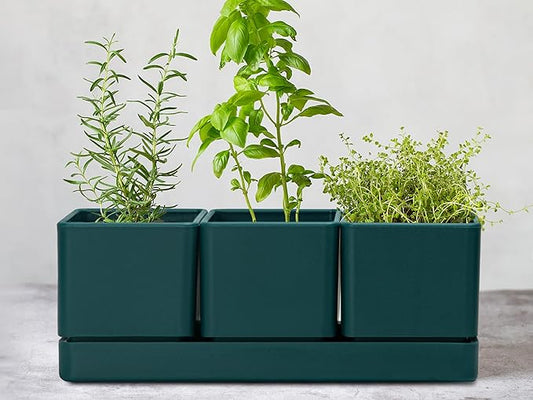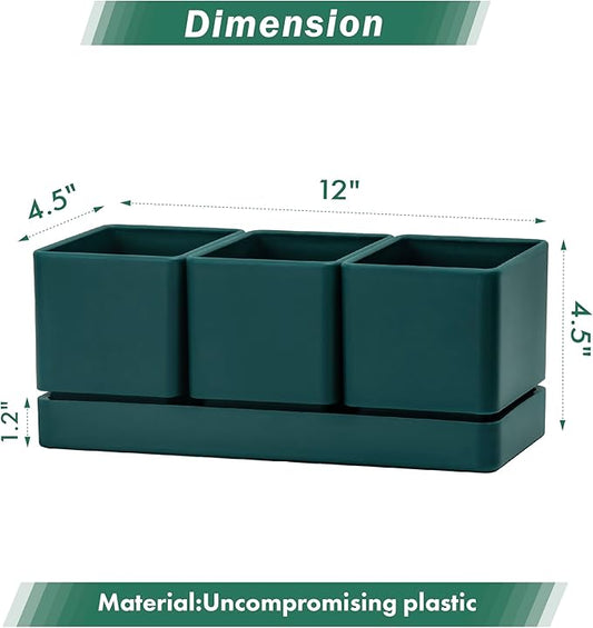 D'vine Dev Herb Garden Planter Set, Plastic Plant Pots with Drainage and Saucer, Indoor Succulent Cactus Vegetable Pot for Windowsill, Garden Balcony, Green, Set of 1, 76-V-C-1